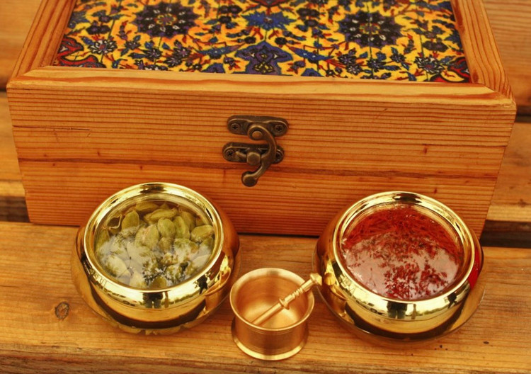 پک هدیه هل و زعفران سلطنتی چوبی